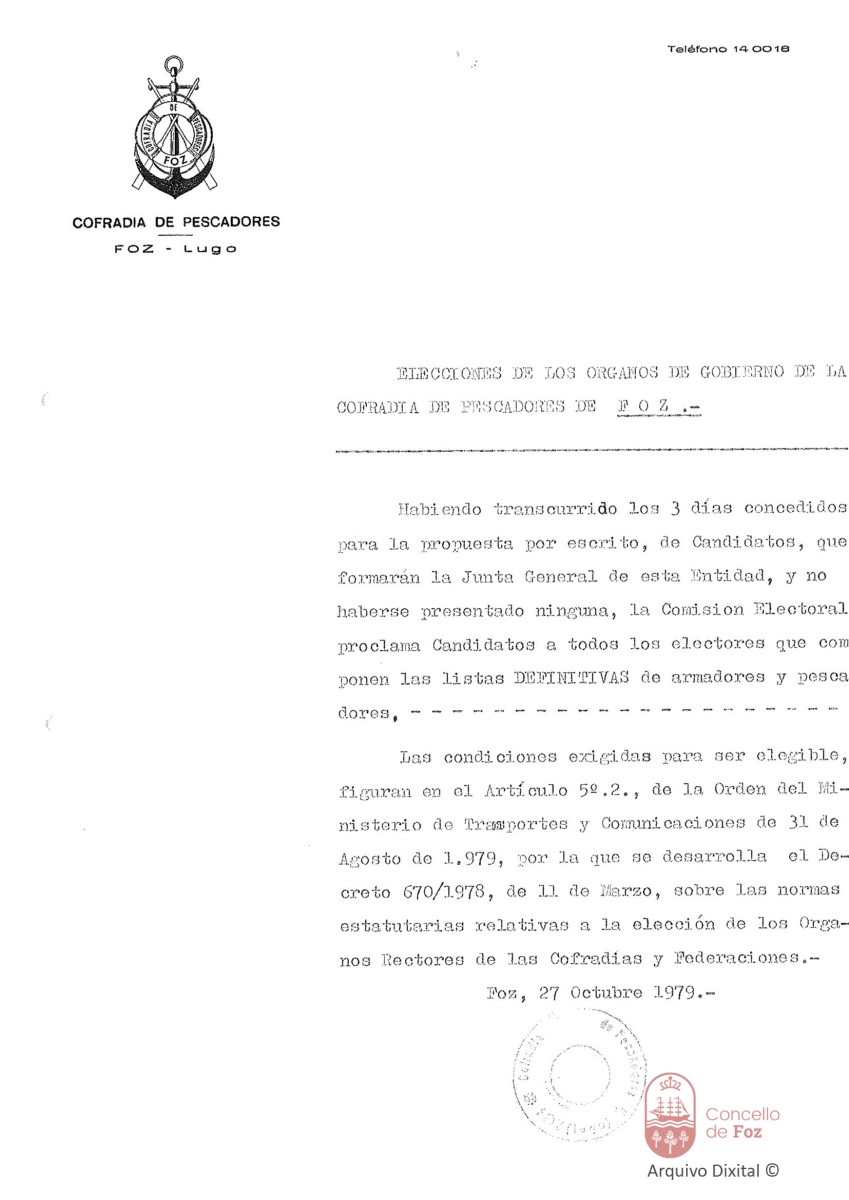 Comunicación de proclamación de candidatos que formarán a Xunta Xeral da Cofradía de Pescadores