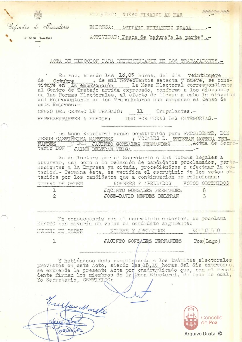Acta de elección de representantes dos traballadores da embarcación Nuevo Mirando al Mar