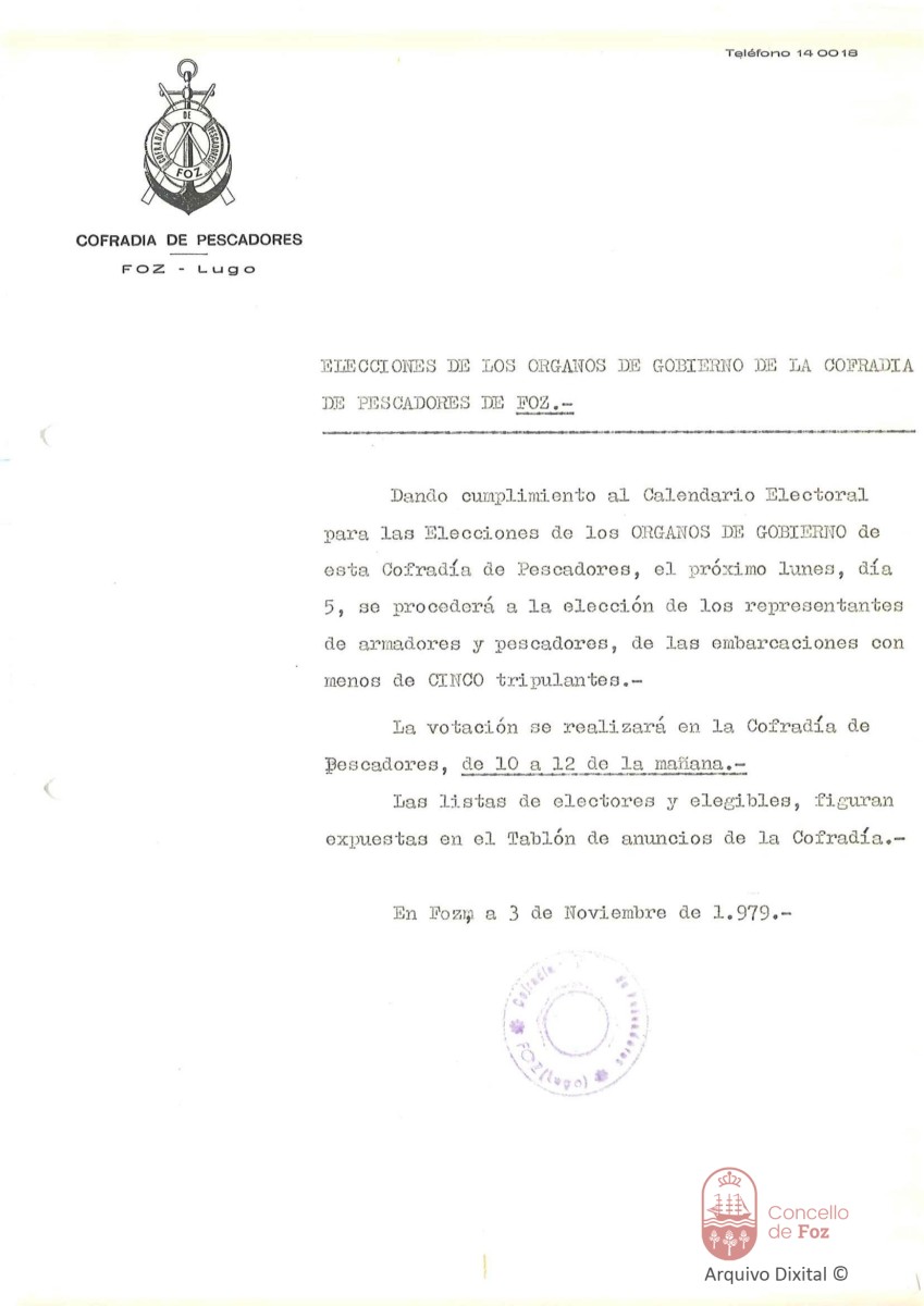 Notificación elección dos representantes de armadores e pescadores de embarcacións con menos de cinco tripulantes para a elección dos órganos de Goberno da Cofradía de Pescadores