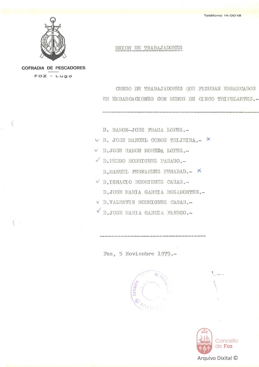 Censo de traballadores que figuran en embarcacións de menos de cinco tripulantes