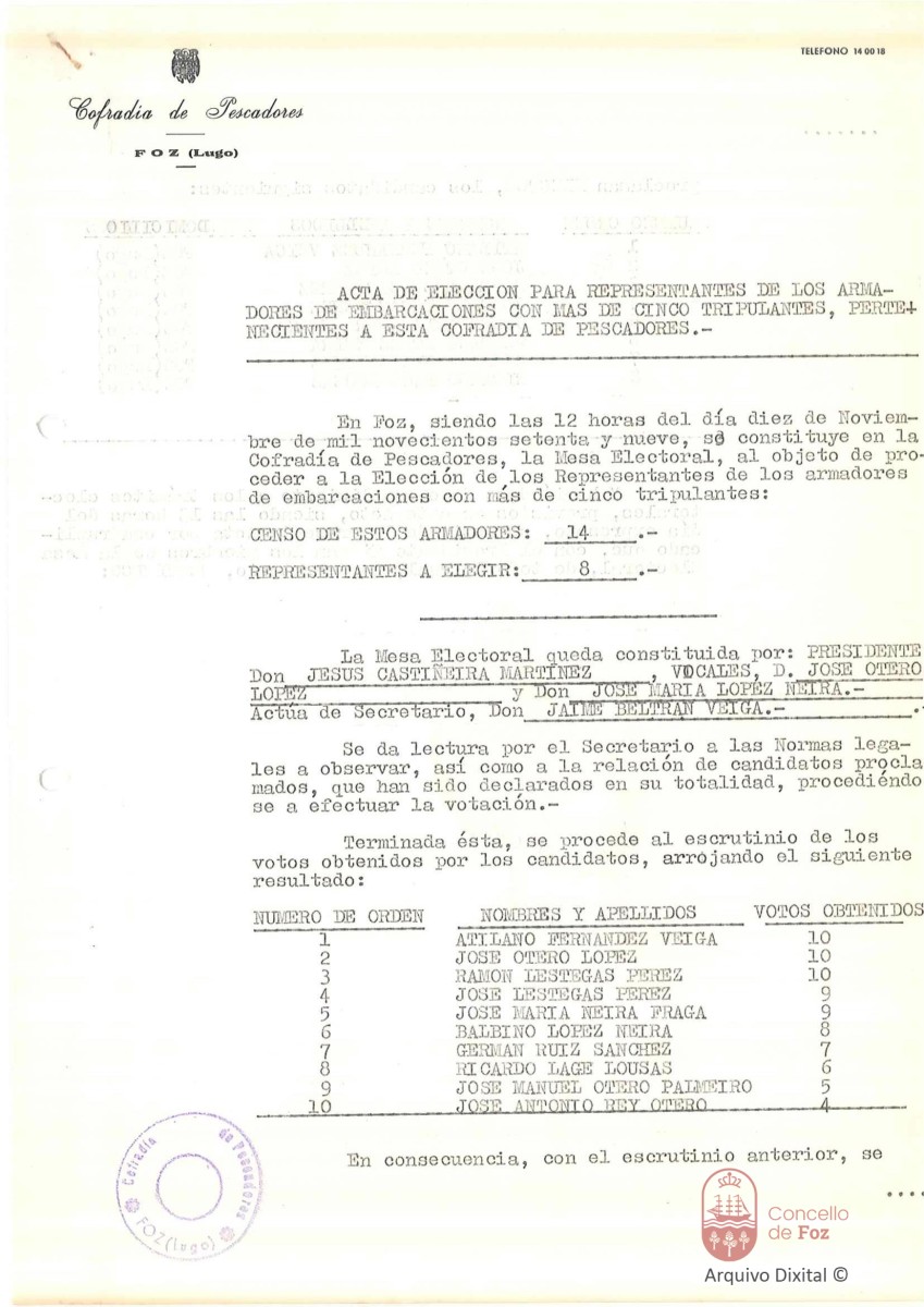 Acta de elección para representantes dos armadores de embarcacións de máis de cinco tripulantes