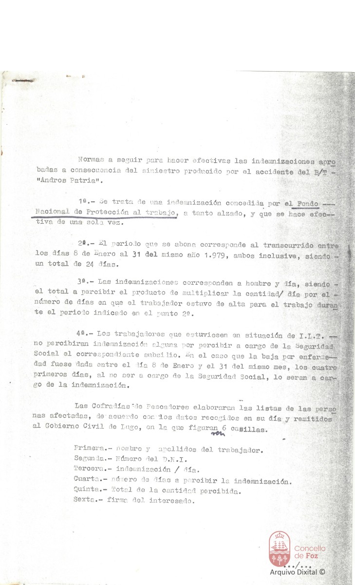 Normas para facer efectivas as indemnizacións aprobadas, consecuencia da marea negra causada polo petroleiro Andros-Patria