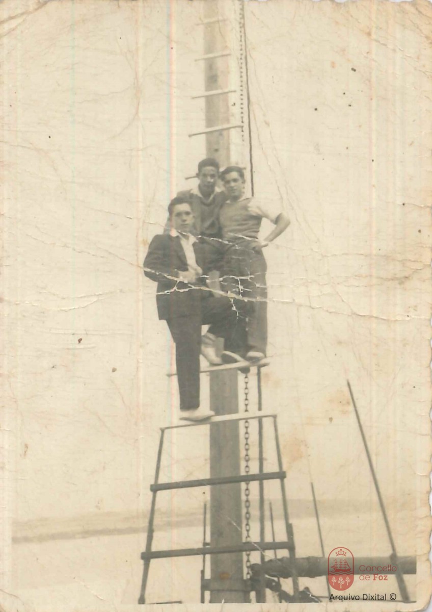 Abilio, Manolo e Braulio de Castro no pau maior dun mercante.