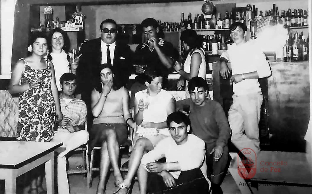 Aparecen: Suso do Bahía, Pedro de Aurelia, O Chícaro (á esquerda), Isabelita Cao, Juan de Tanana, Luciano, sentado no chan.