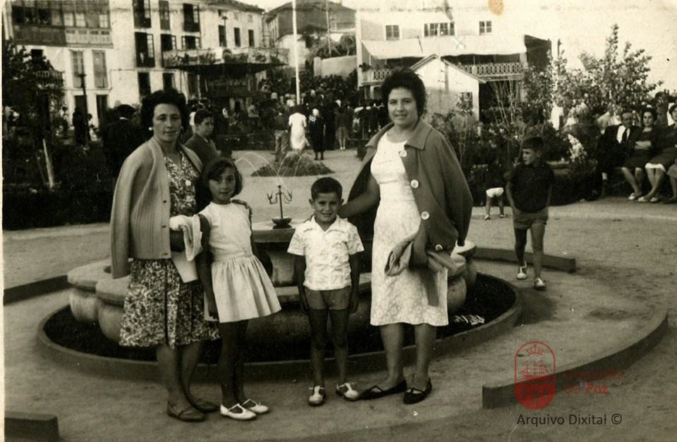 Lola, Pedro, Maruja e Rosa del Riego no parque Conde de Fontao