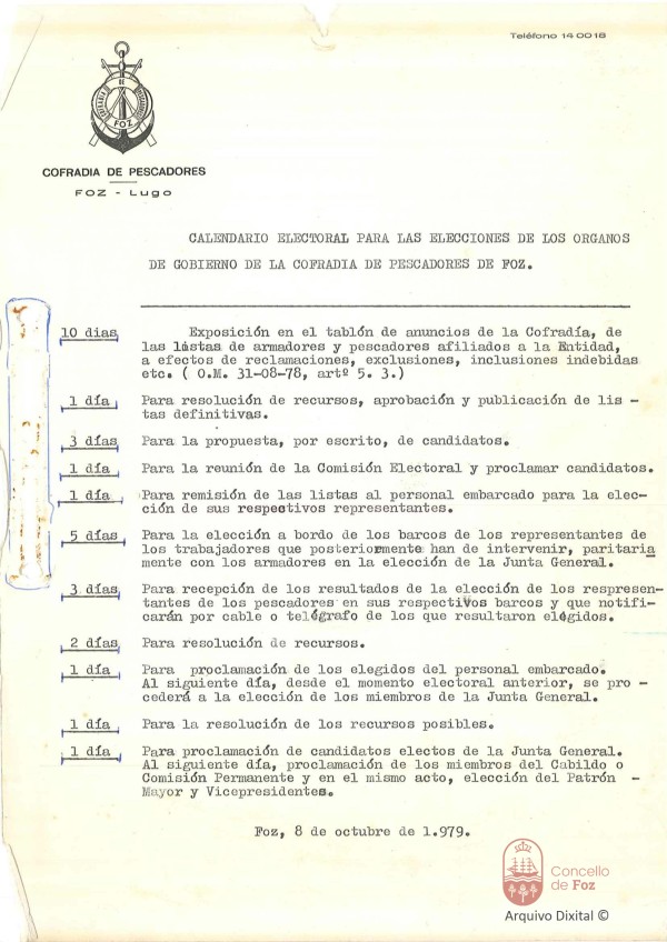 Calendario electoral para as eleccións dos órganos de goberno da Cofradía de Pescadores Cofradía de Pescadores