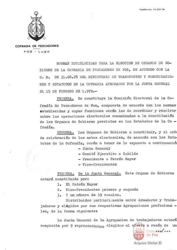 Normas para a elección do Goberno da Cofradía de Pescadores de Foz Cofradía de Pescadores
