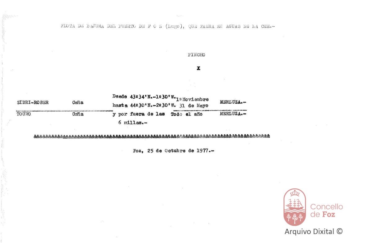Flota de baixura do porto de Foz que faena en augas da CEE.