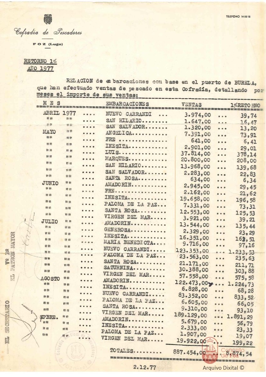 Relación de embarcacións con base no porto de Burela que efectúas vendas de peixe na Cofradía de Pescadores de Foz