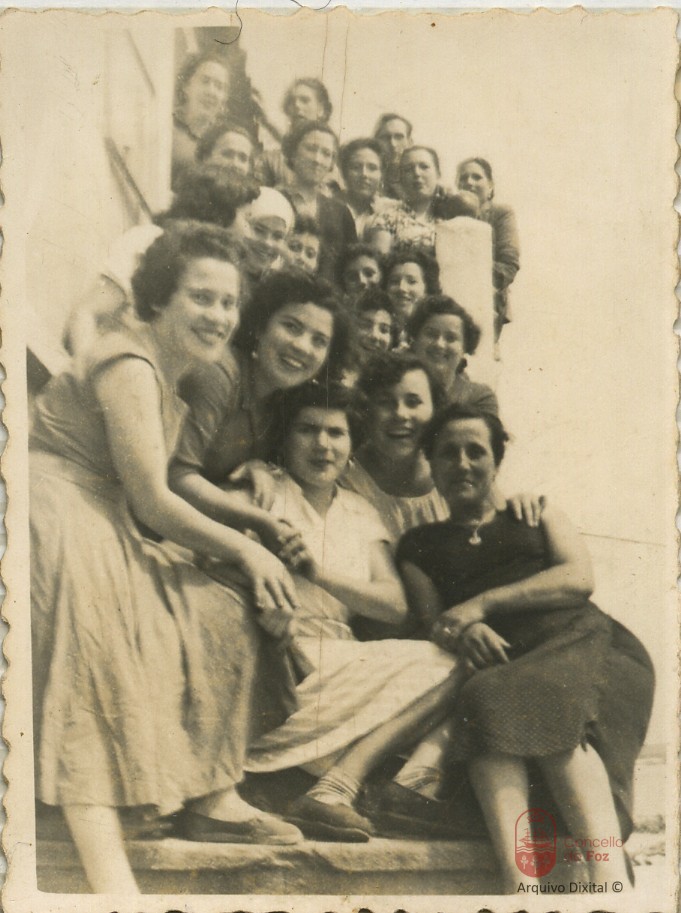 Traballadoras da fábrica Sanjuan entrando a traballar.