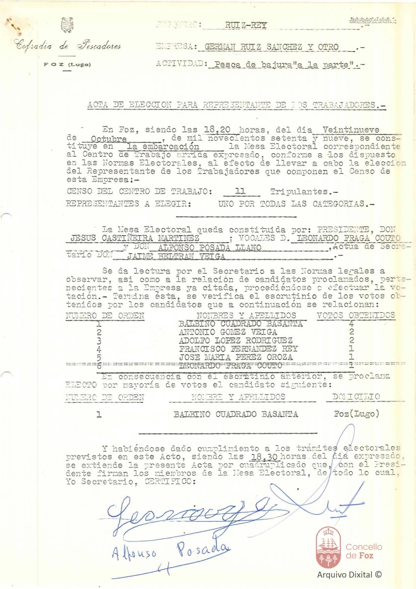 Acta de elección de representante dos traballadores na embarcación Ruíz Rey