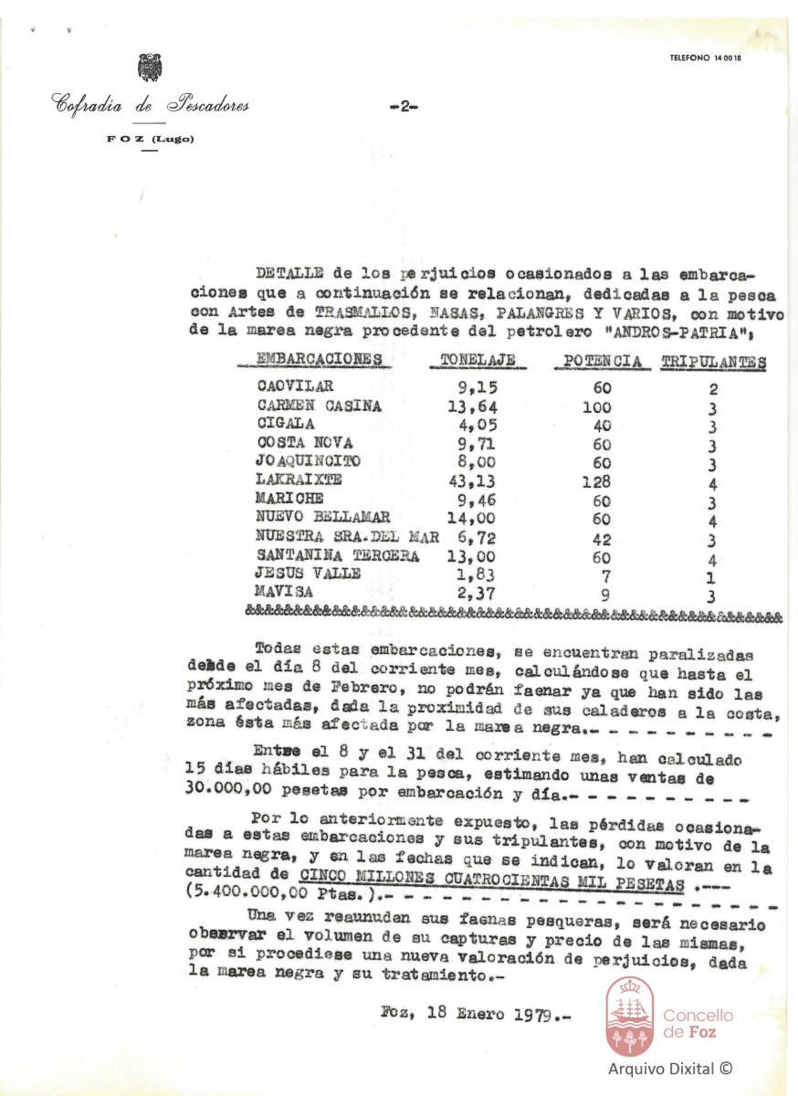Detalle de danos causados ás embarcacións dedicadas á pesca con artes de trasmallos, nasas, palangres e varios, pola marea negra causada polo petroleiro ANDROS-PATRIA.
