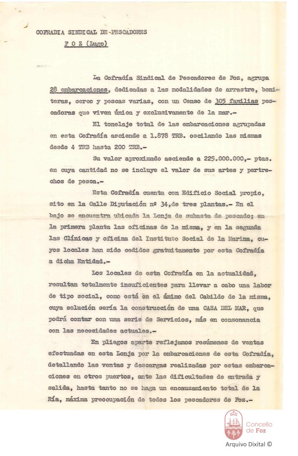 Documento que mostra a necesidade da construcción da Casa do Mar Cofradía de Pescadores