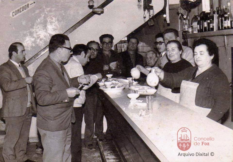 María Luisa, Eugenia, Julia, Sampaíño, Jo, Nécega, o Chato entre outros, no bar do Lar