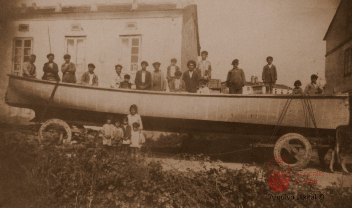 Encima da embarcación (de esquerda a dereita): 1. Graciano do práctivo, 2. Emilio de Ánxela, 3. non se coñece, 4. Vicente do Delgado, 5. Juan María, 6. o neno Suso de Juan María, 7. non se coñece, 8. Antonio do Quintanero, 9. Lalo do Quintanero, 10. Ramón do Pechereno, 11. Pepe do Barbeiro, 12. neno por encima del Eliseo Ares o Nembrudo, 13. non se coñece, 14. o Rauto, 15. non se coñece.