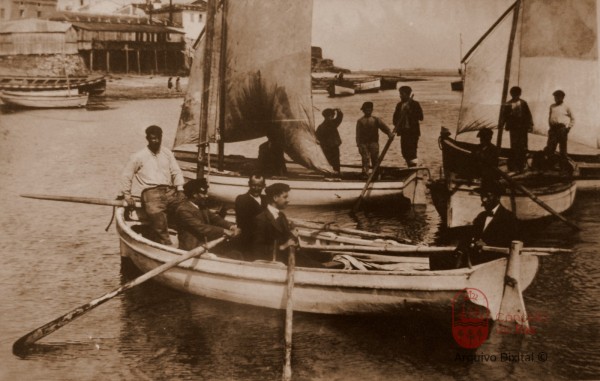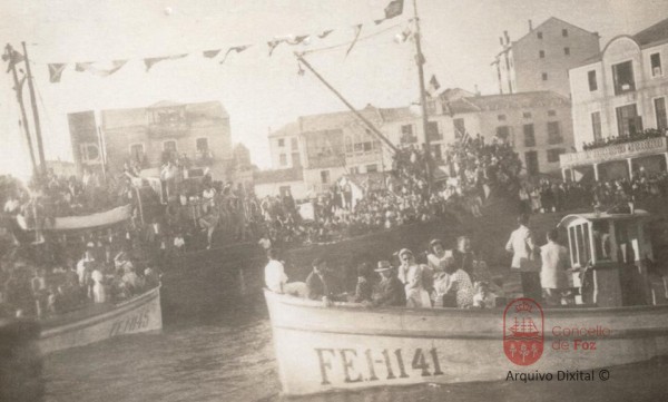 O Jesús del Gran Poder cheo de xente nas regatas de bateles, nas festas de San Lourenzo. Barcos