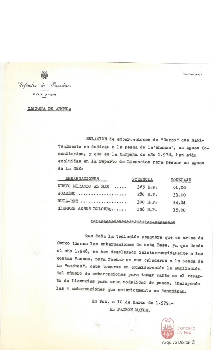 Relación de embarcacións de cerco que habitualmente se dedican á pesca dá anchoa.