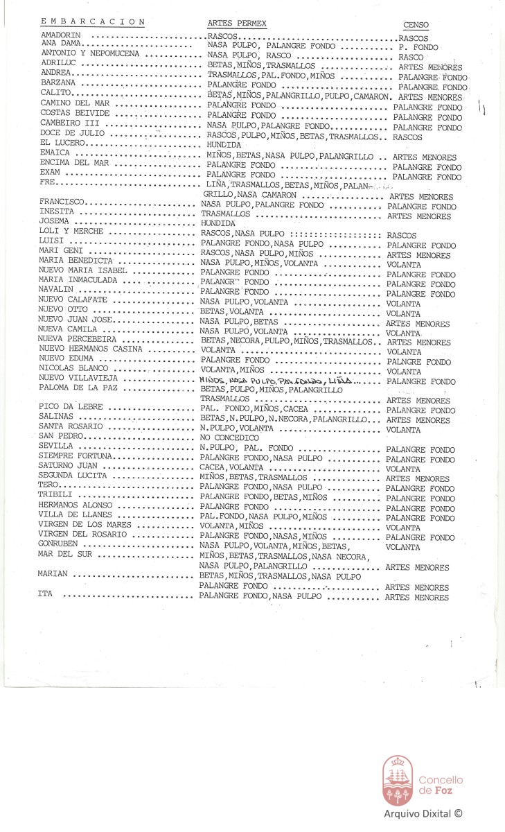 Censo de embarcacións e as artes de pesca de desenvolven.