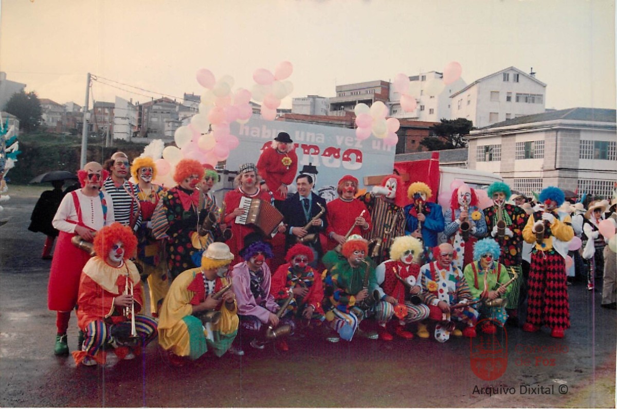 Entroido. Pernas do Centiño disfrazados de paiasos da tele.