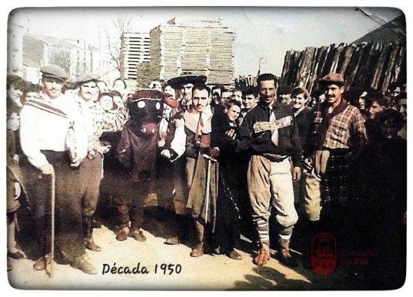 Entroido. Representación da corrida de toros na praza Conde de Fontao. Festas