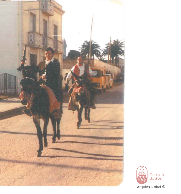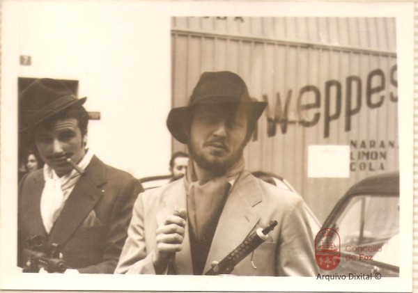Entroido. Cesarín e Jo disfrazados de Curro Jiménez e Algarrobo. Festas