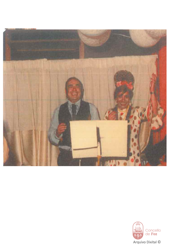 Entroido. Cesarín e Jo disfrazados de Lola Flores e Manolo Caracol. Festas