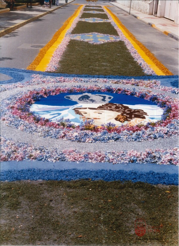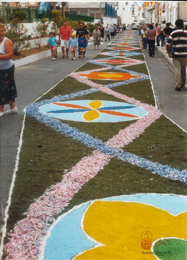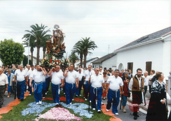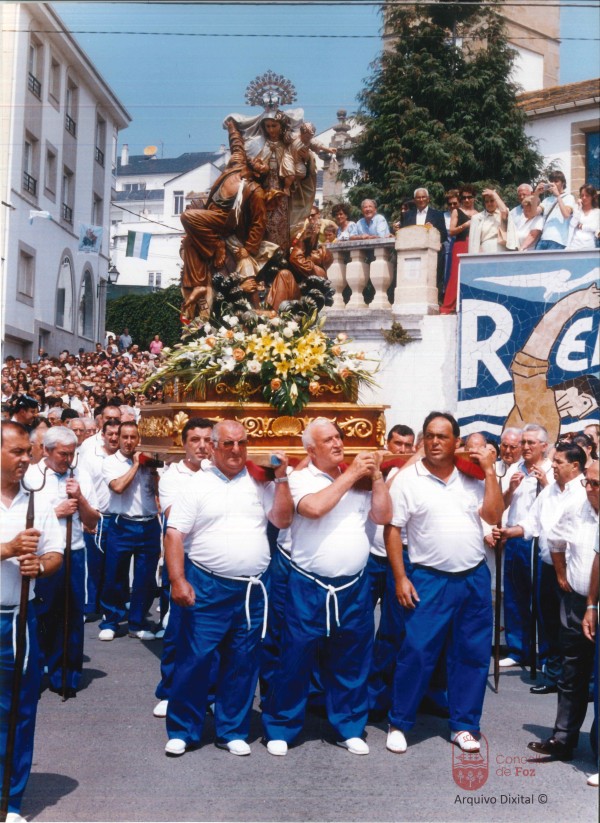 Festas do Carme. Mulleres cofrades levando a imaxe da Virxe. Festas