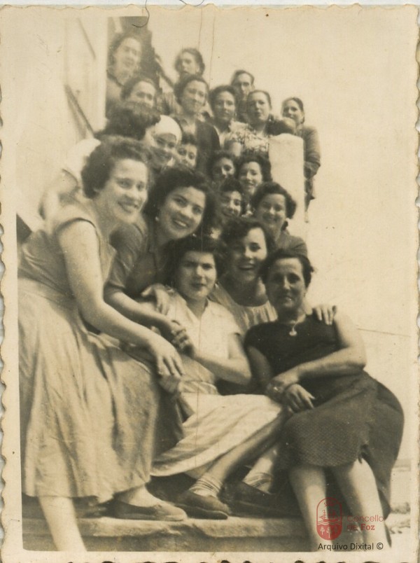 Traballadoras da fábrica Sanjuan entrando a traballar. Mulleres e o mar