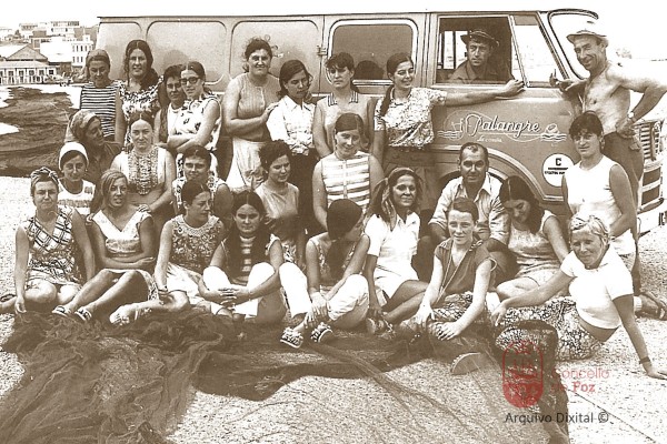 Redeira e homes estirando as redes Mulleres e o mar