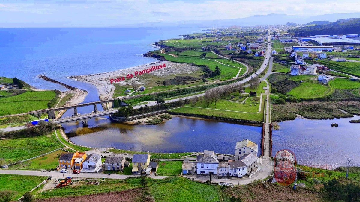 Barrio da Ponte de Ferro. Punto onde desemboca o río Ouro. Este río nace no Cadramón (Valadouro), pasa polas parroquias focegas de San Acisclo, Santa Cilla e despois dun percorrido de 29 Km, desemboca nesta praia de Fazouro. Créese que pode ser que o nome do río lle de nome á parroquia de Fazouro.