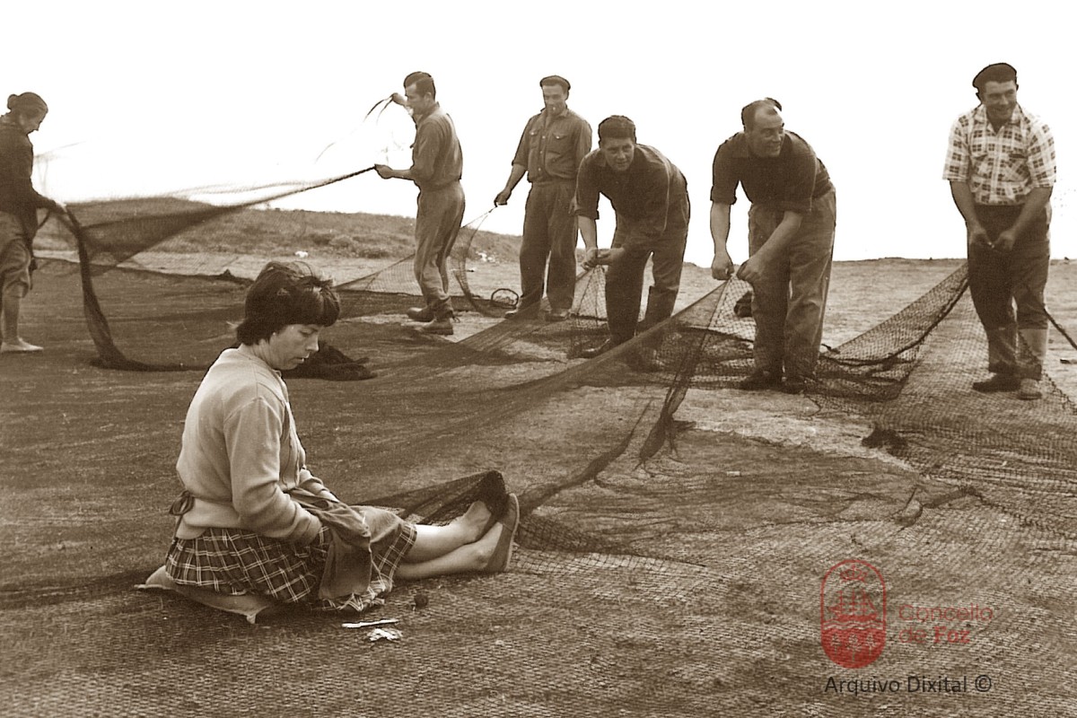 Redeira e homes estirando as redes