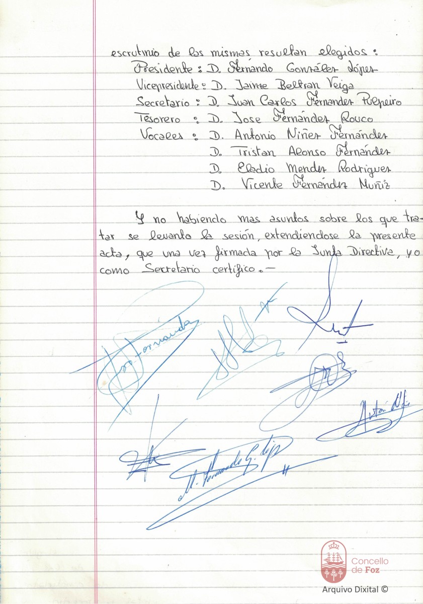 Acta da Xunta de Elección da primeira directiva do Clube Náutico.