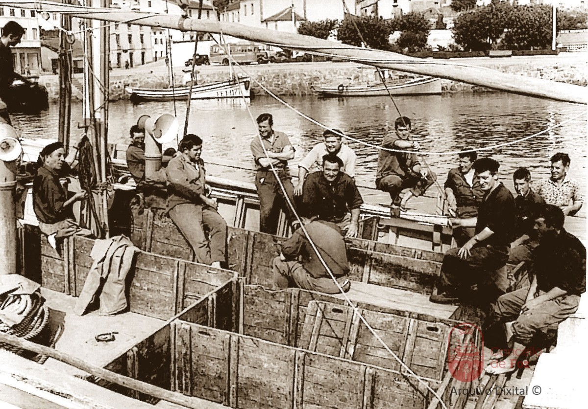 De esquerda a dereita: Chingla, Ángel Cao, Minuto, Catalino, Paco o Coluso (2º patrón), Salvador Incera, Mundo (Cascarelo), Cándido Blanco..