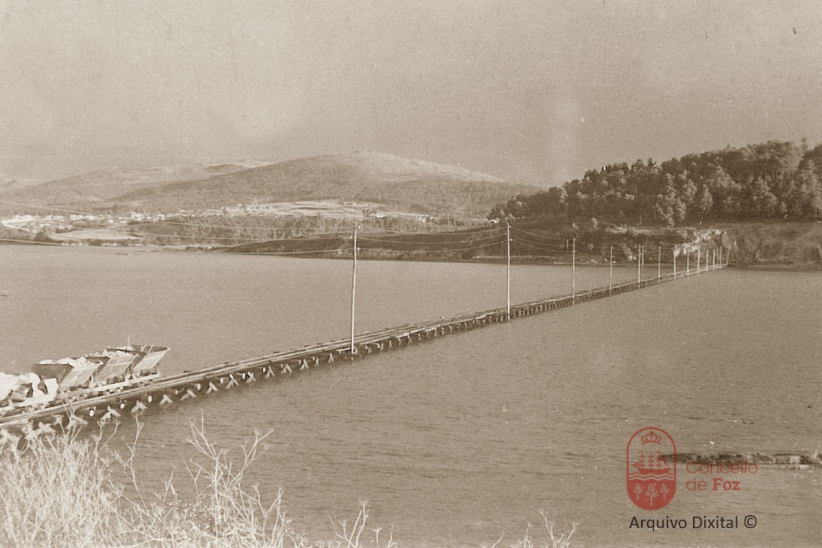 Vía para traer pedra da canteira para construir o porto.