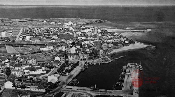 Panorámica dende o Curveiro, onde se ve a construcción do muelle novo. O pobo de Foz
