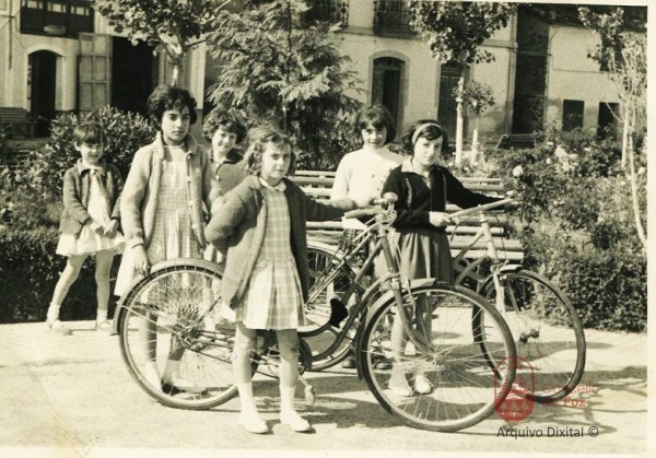 María José (Xexé), Maribel, María del Carmen, Lucita e Loli no xardín do Porto Focegos